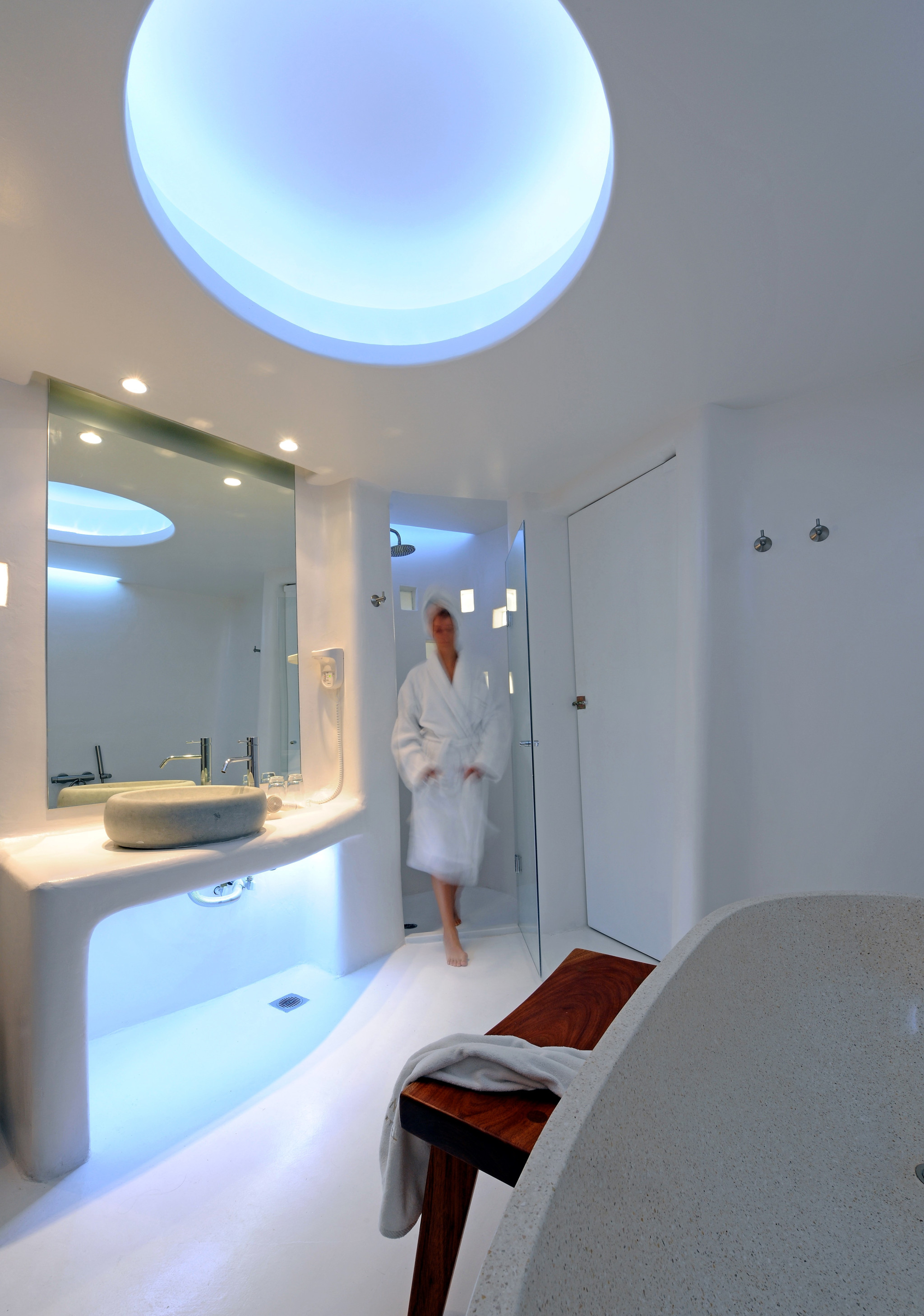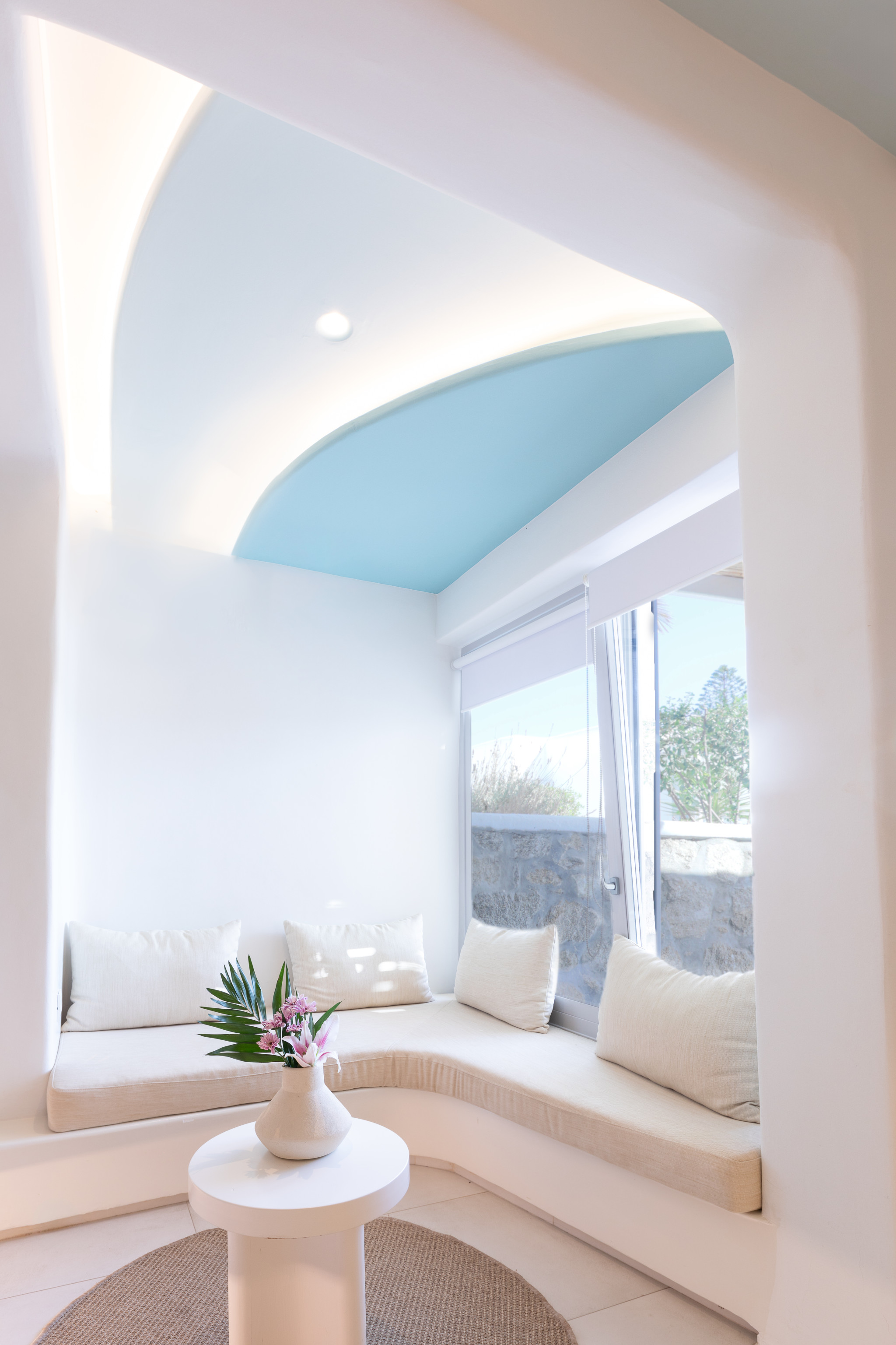 Andronikos Hotel Mykonos pushes the boundaries of hotel design to a new dimension. Each cocoon is characterized by fluid forms, curves and natural elements such as pebbles, bamboo and wood which create an harmonious and relaxing environment that calms the mind and spirit. In each room at the Andronikos Hotel Mykonos, floor, walls and furniture, lay on a continuous surface so as to create a sculpture of unmatched elegance. Cocoon is our proud achievement, a worth addition to the Andronikos Hotel Mykonos “total hotel experience concept”.